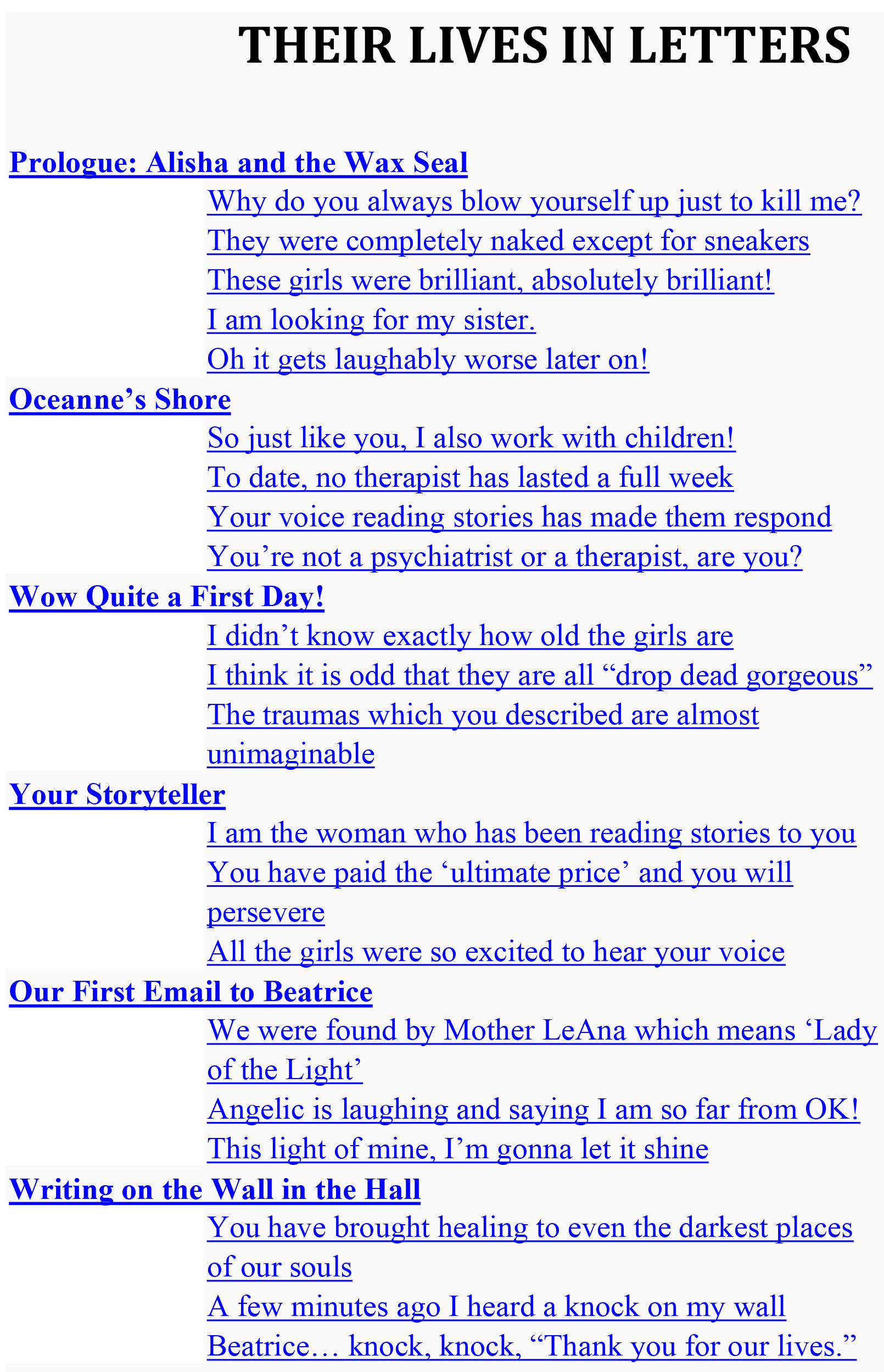 Together Beatrice and Oceanne discovered a never before tried method of therapy which made amazing inroads to supplant the girls' intense emotional trauma and give them back the childhoods that were stolen from them.